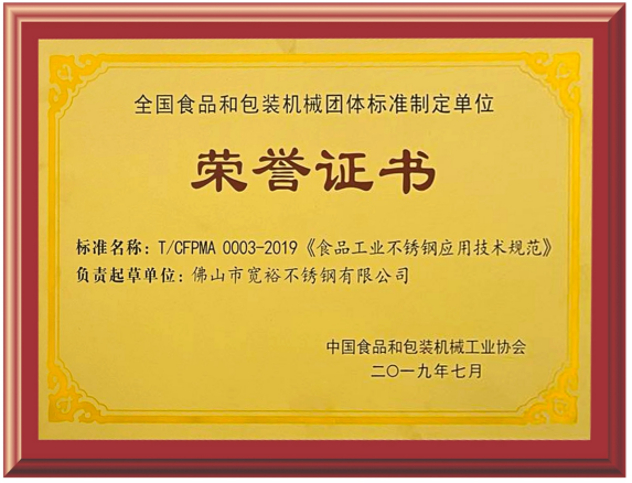 2023年2月21日,中國食品和包裝工業(yè)協(xié)會(huì)于佛山·順德北滘組織召開《綠色設(shè)計(jì)產(chǎn)品評價(jià)技術(shù)規(guī)范微機(jī)組合秤》團(tuán)體標(biāo)準(zhǔn)研討會(huì),寬裕管業(yè)黃寬銘先生受邀出席研討會(huì)。寬裕管業(yè)作為T/CFPMA 0003-2019《食品工業(yè)不銹鋼應(yīng)用技術(shù)規(guī)范》負(fù)責(zé)起草單位,在機(jī)械備用不銹鋼管的生產(chǎn)制造領(lǐng)域具有12年經(jīng)驗(yàn),為包裝機(jī)械、自動(dòng)化設(shè)備、電鍍設(shè)備等生產(chǎn)廠家提供設(shè)備用不銹鋼管整體解決方案。